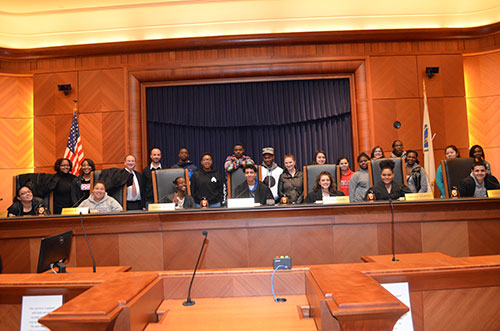 BOSTON, MA -- A group of approximately 100 high school students from Another Course to College today participated in Law Day activities at the Supreme Judicial Court, where they had the opportunity to learn from and interact with Chief Justice Ralph D. Gants and Justice Geraldine S. Hines, current and former law clerks, and attorneys. This year's Law Day theme is Magna Carta: Symbol of Freedom Under Law.